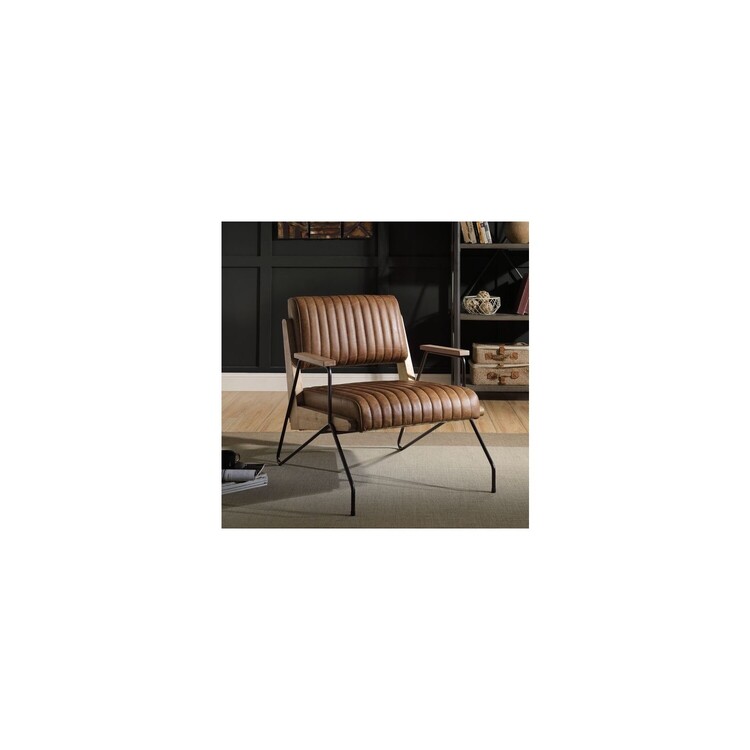 • Cocoa Leather Accent Chair Furniture Matt Iron Metal Frame - Acme image - 1