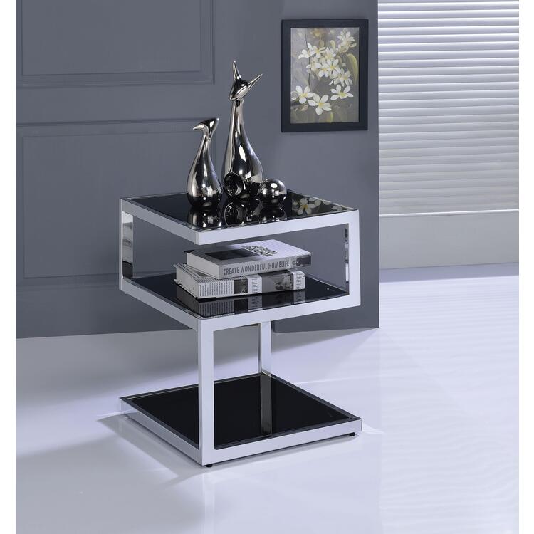• Chrome & Black Glass 3 - Tier Square Table w/Open Storage - Acme image - 1
