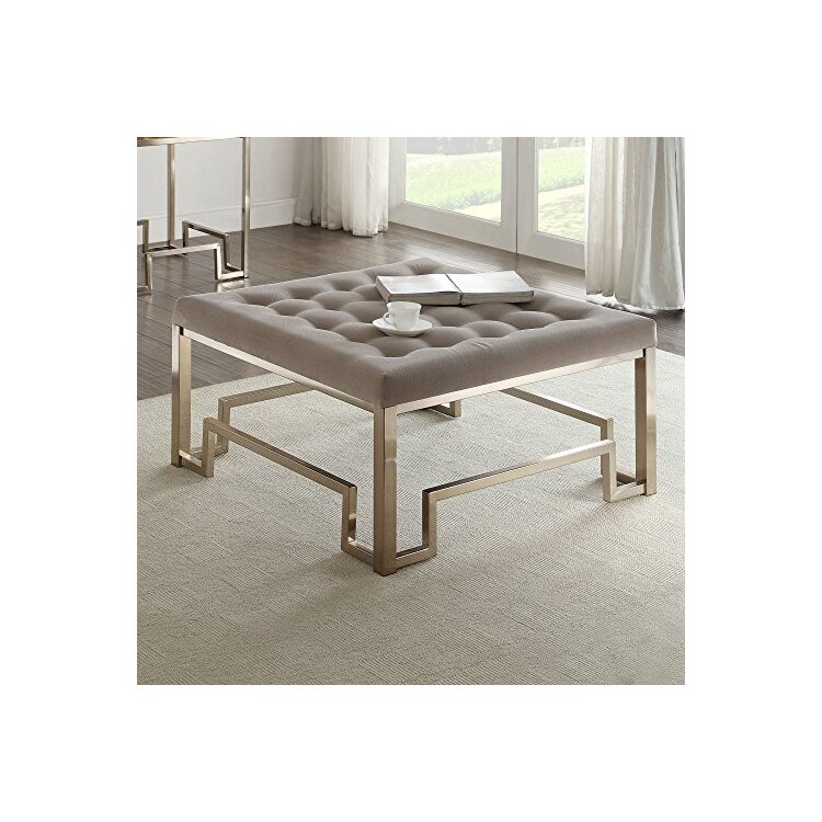 • ACME Cocktail Ottoman with End Table - Champagne Geometric Design image - 1