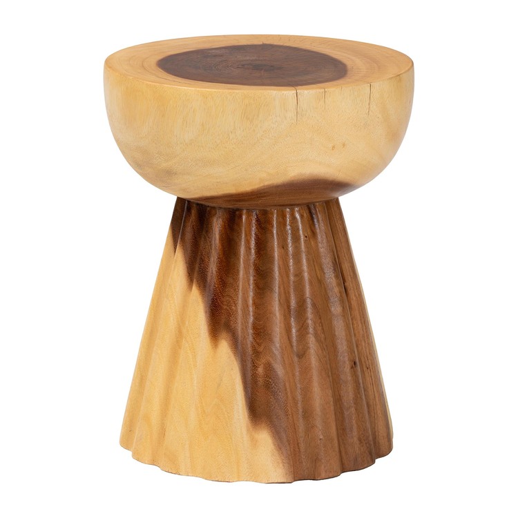 • bali & pari Alara Hand-carved Suar Wood Side Table ? Sculptural Pedestal Accent Table with Natural Grain, Modern Boho Style for Living Room or Bedroom image - 1