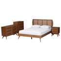• Baxton Studio Asami Mid-Century Modern Walnut Brown Finished Wood and Woven Rattan King Size 4-Piece Bedroom Set image - 1