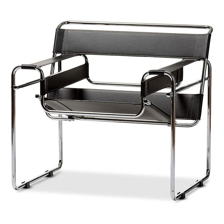 • Baxton Studio Jericho Black Leather Mid-Century Modern Accent Chair image - 1