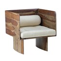 • BenJara 30 Inch Accent Chair, Panel-Style Legs, Tufted, Brown Wood, Beige Cotton image - 1
