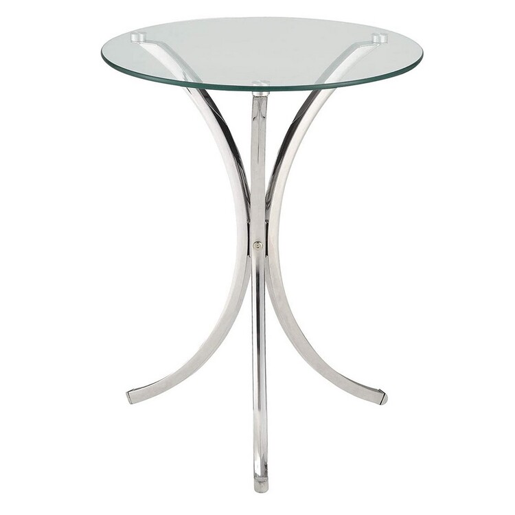 • Benjara Modish Metal Accent Table With Glass Top,Silver And Clear image - 1
