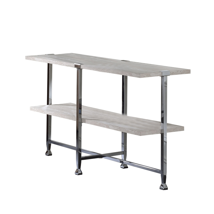 • BenJara Sofa Table with X Shaped Metal Base and 2 Storage Shelves, Silver and Beige image - 1