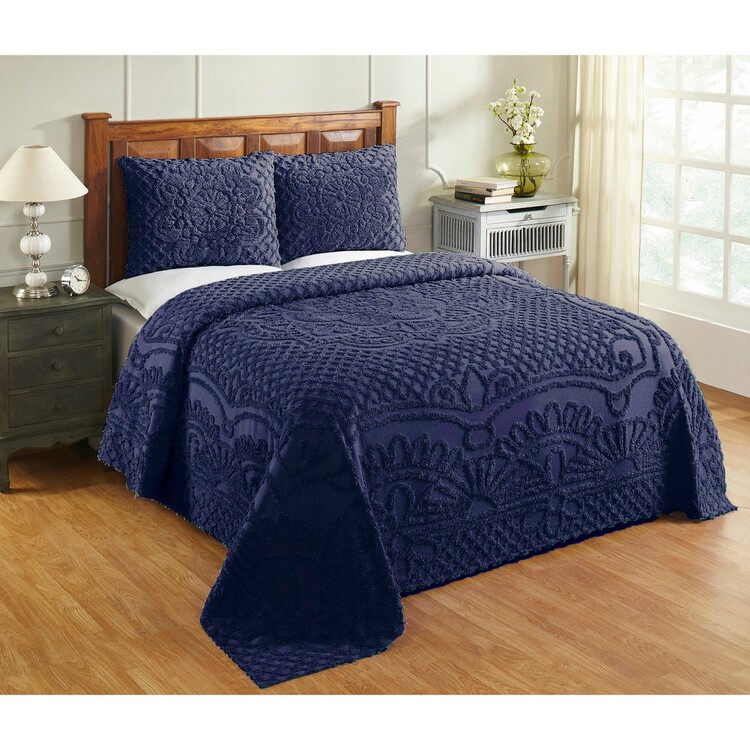 • Better Trends Trevor Collection 100% Cotton Full/Double Bedspread Set in Navy image - 1