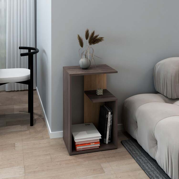 • DEPOT E-SHOP Modern Side Table with 2 Shelves - Carbon Espresso & Oak Finish image - 1