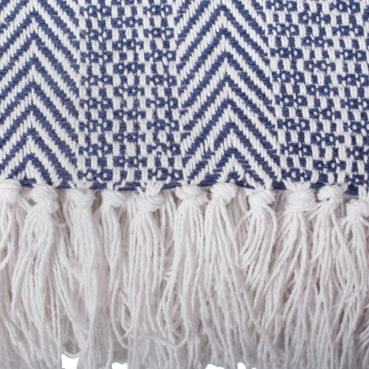 • Nautical Blue Herringbone Striped Cotton Throw Blanket 50x60 - Design Imports image - 1