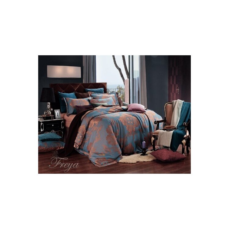 • Queen Size Duvet Cover Sheets Set - Soft Brushed Cotton, Elegant Freya Floral Pattern - 2 Decorate image - 1