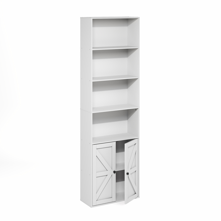 • Furinno Jensen Farmhouse 6-Shelf Display Bookcase, Bookshelf with Doors, White image - 1