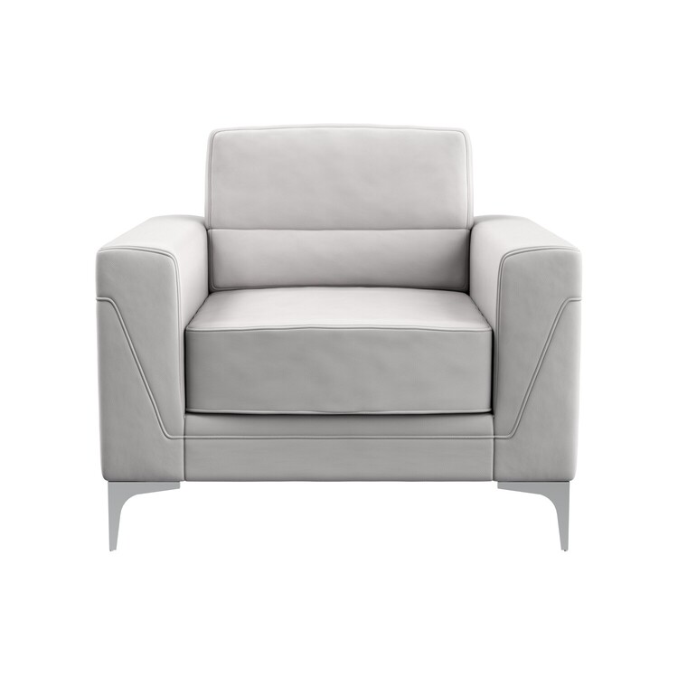 • Luxurious Light Grey PVC Armchair with Square Arms & Under Zip Storage image - 1