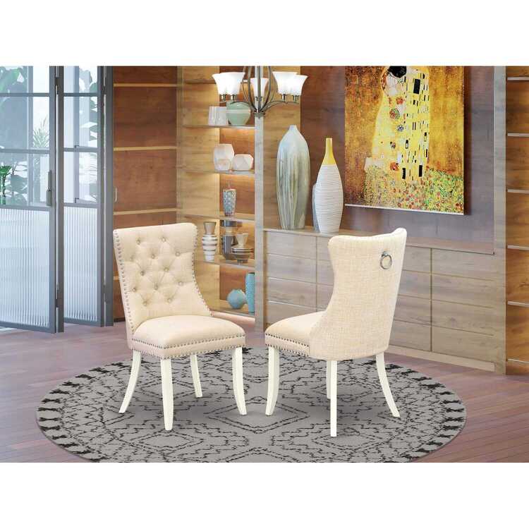 • East West Furniture DAP2L32 Dallas Parsons Dining Chairs - Button Tufted Nailhead Trim Light Beige Linen Fabric Upholstered Chairs, Set of 2, linen white image - 1