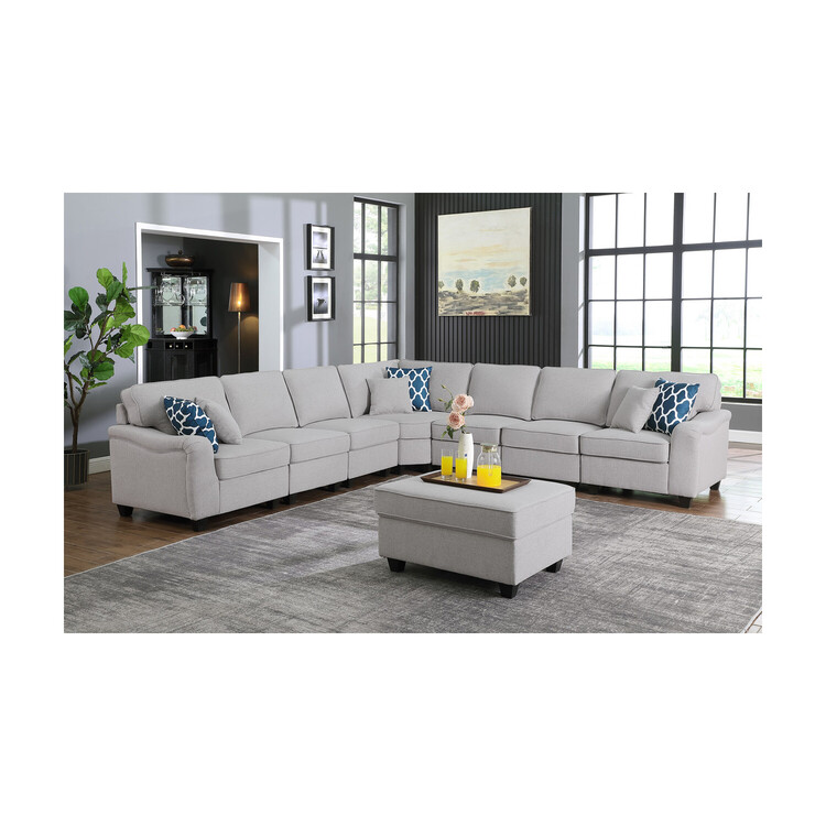 • Homestock City Chic Dark Gray Linen 8Pc Modular L-Shape Sectional Sofa And Ottoman - Comfort Meets Style With Reversible Design For Versatile Living Rooms. image - 1