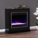 • HomeStock Eclectic Escape Color Changing Electric Fireplace - Black Mantel with Gold Trim, Multicolor Flames, Acrylic Fill, Remote Control image - 1