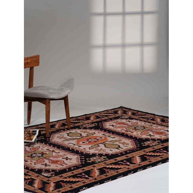 • HomeStock Hand Knotted Oriental Wool And Silk 9'x12' Area Rug Oriental Kazak Black Cream image - 1