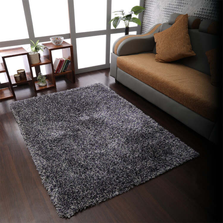 • HomeStock Hand Tufted Shag Polyester 10'x13' Area Rug Solid Blue White image - 1