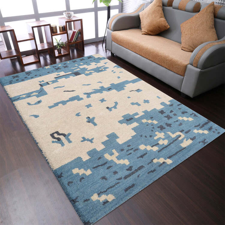 • HomeStock Hand Tufted Wool 9'x12' Area Rug Abstract Beige Blue image - 1