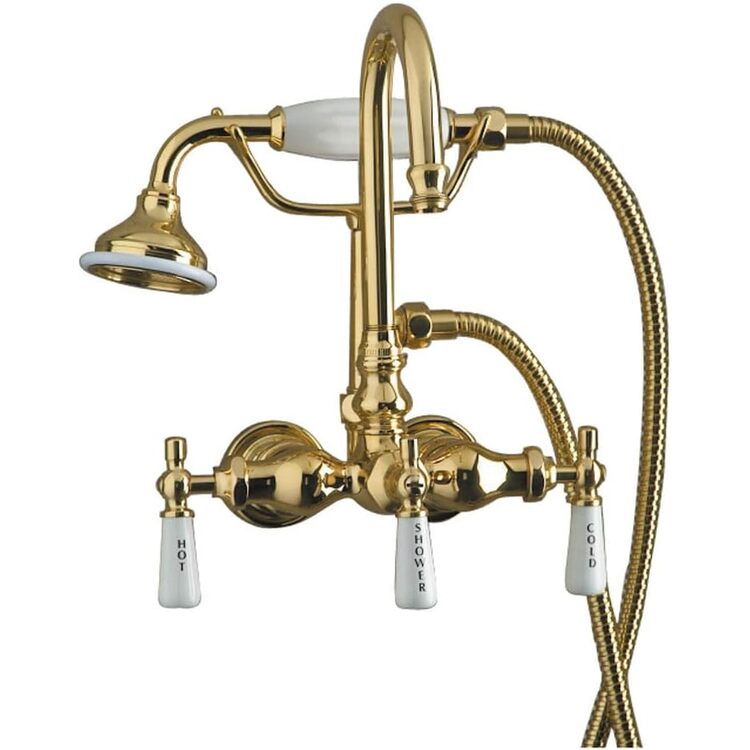 • Homestock Mediterranean Mastery Wall Mount Handheld Shower Faucet For Cast Iron/Acrylic Tubs With Code Gooseneck Spout, 59 Inch Hose - Modern Bathroom Faucet, High Arc Bathroom Faucet image - 1