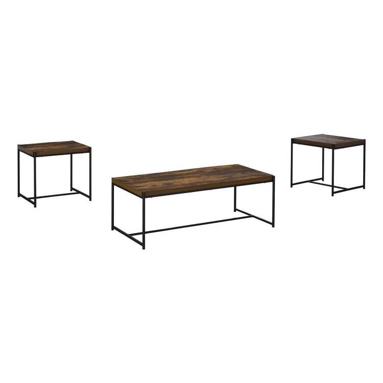 • HomeStock Neo-Classical Nostalgia 3 Piece Coffee and End Table Set - Sturdy Brown Wood MDF Tables with Metal Frames, Versatile Design for Living Rooms and Hallways, 1 Coffee Table, 2 End Tables image - 1