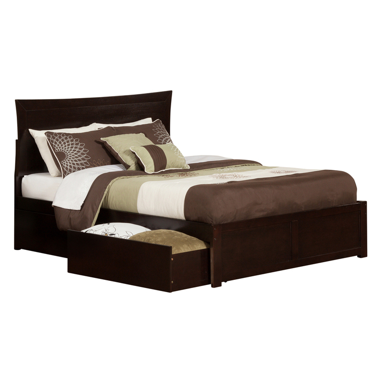 • HomeStock Platform Bed with Flat Panel Footboard and Turbo Charger with Bed Drawers Twin Size, Espresso Finish, Modern Design with Curved Headboard and 2 Underbed Drawers, Expandable Storage image - 1