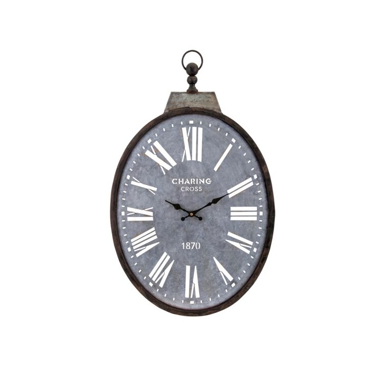 • Imax Vintage Galvanized Metal Wall Clock - Jacey Oval Clock image - 1