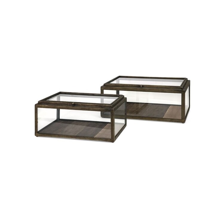 • Imax Glass Wood Boxes - Set of 2 Decorative Storage Display Case image - 1