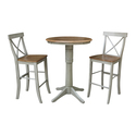 • International Concepts 30" Round Pedestal Bar Height Table With 2 X-Back Bar Height Stools - Set of 3 Pieces image - 1
