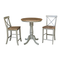 • International Concepts 30" Round Pedestal Gathering Height Table With 2 X-Back Counter Height Stools - Set of 3 Pieces image - 1