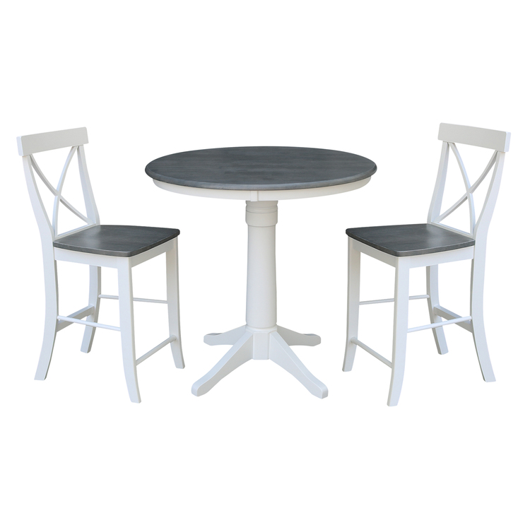 • International Concepts 36" Round Pedestal Gathering Height Table With 2 X-Back Counter Height Stools - Set of 3 Pieces image - 1