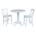 • International Concepts 36" Round Extension Dining Table 34.9"H With 2 X-Back Counter Height Stools image - 1