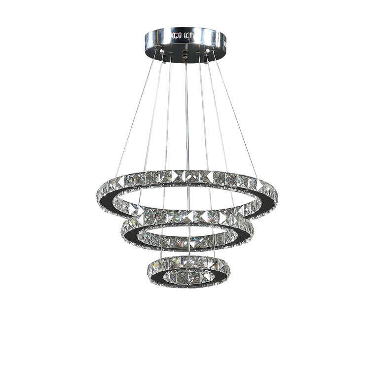 • ORE International 11.8" To 47.2" In Adjustable Height Alva Large Triple Hoop Modern Crystal Stainless Pure White Color Led Remote Control Dimmer Chandelier image - 1