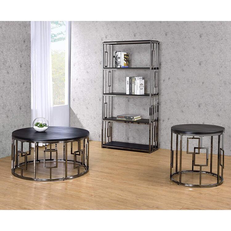 • Picket House Round Coffee Table with Mirrored Top & Gold Accents image - 1