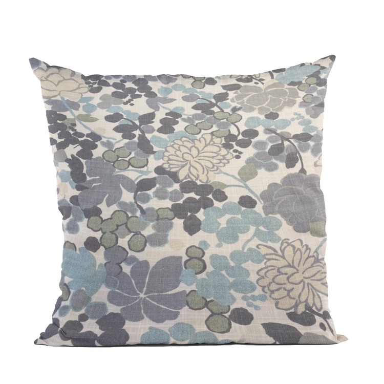 • Plutus Brands Blue Beige Gray Serene Blooms Floral Luxury Throw Pillow image - 1
