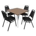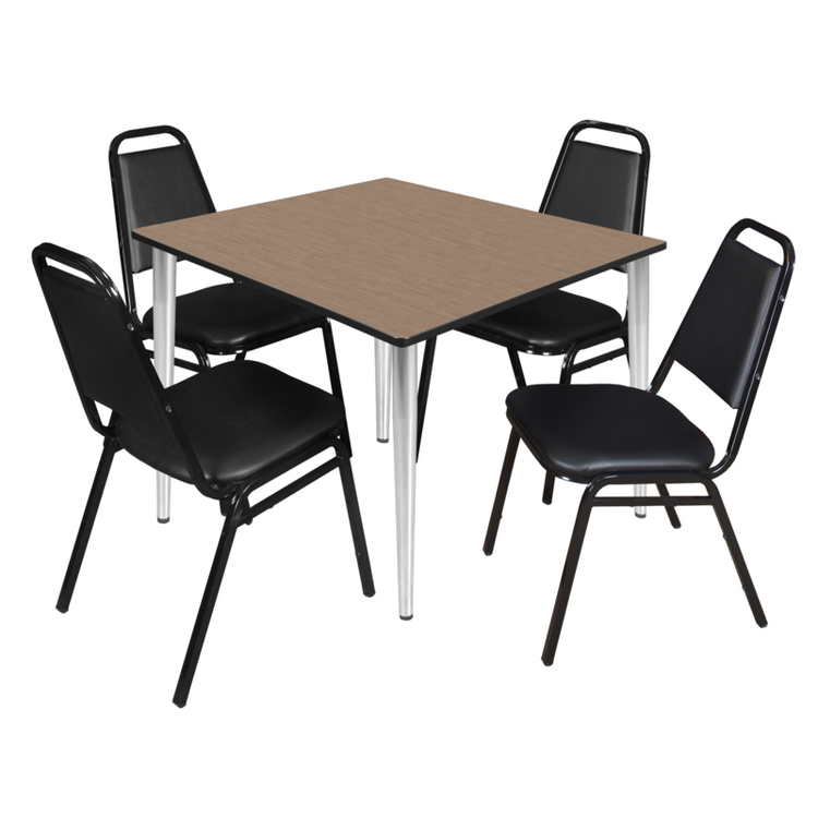 • Regency Kahlo 48 in. Square Breakroom Table- Noble Oak Top, Chrome Base & 4 Restaurant Stack Chairs- Black image - 1