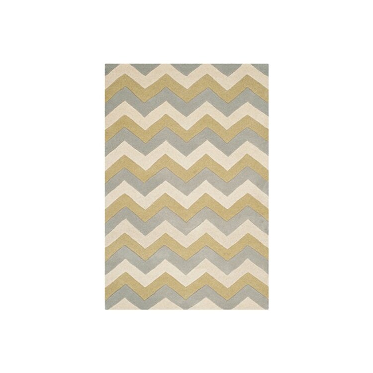 • Grey/Gold Wool Pile Contemporary Rug 5'L x 3'W Small Rectangle - Safavieh image - 1