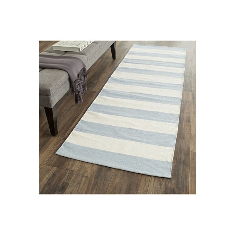 • Sky Blue Ivory Flat Weave Cotton Pile Runner Rug 9L x 2.3W - Safavieh image - 1