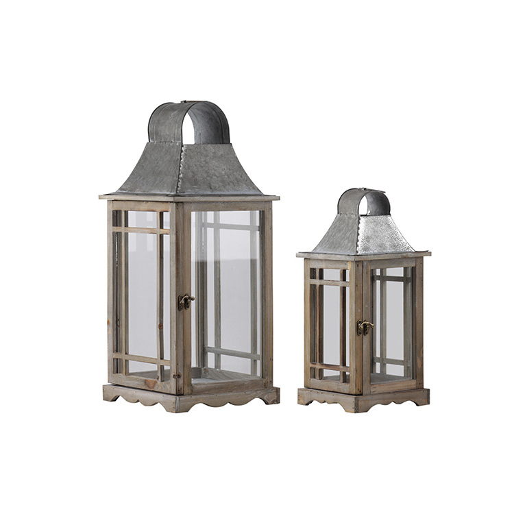 • Wood Square Lanterns Set of Two Natural Finish Brown - Urban Trends Collection image - 1