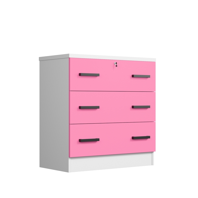 • Woodpeckers Furniture And Mattress Cindy Wooden 3 Drawer Chest Bedroom Dresser (White & Pink) image - 1