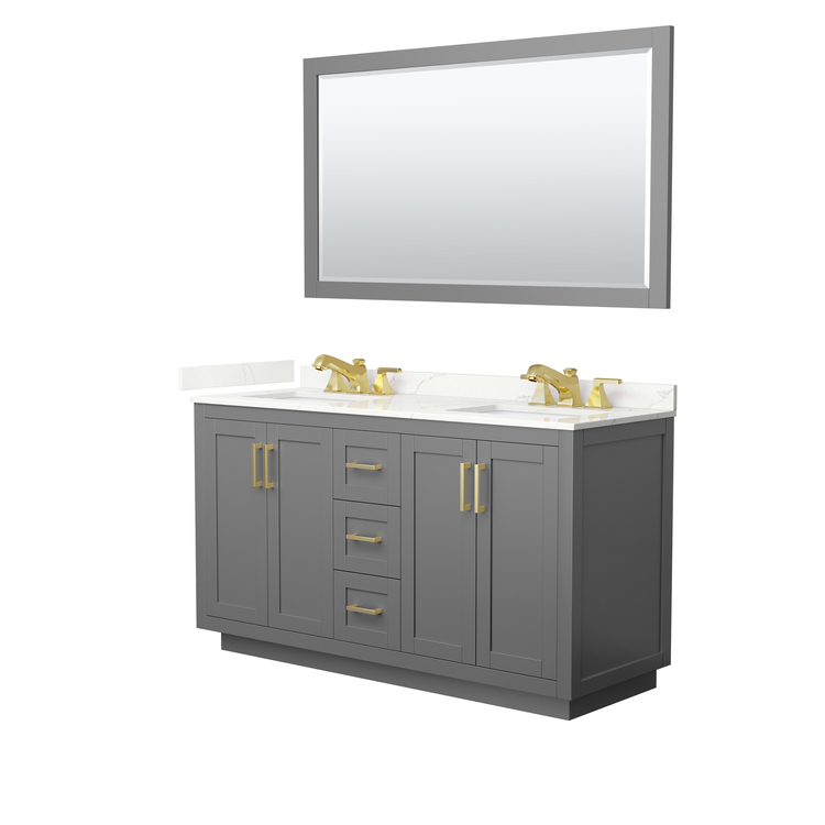 • Dark Gray Bathroom Vanity Set with Quartz Countertop and Gold Trim image - 1