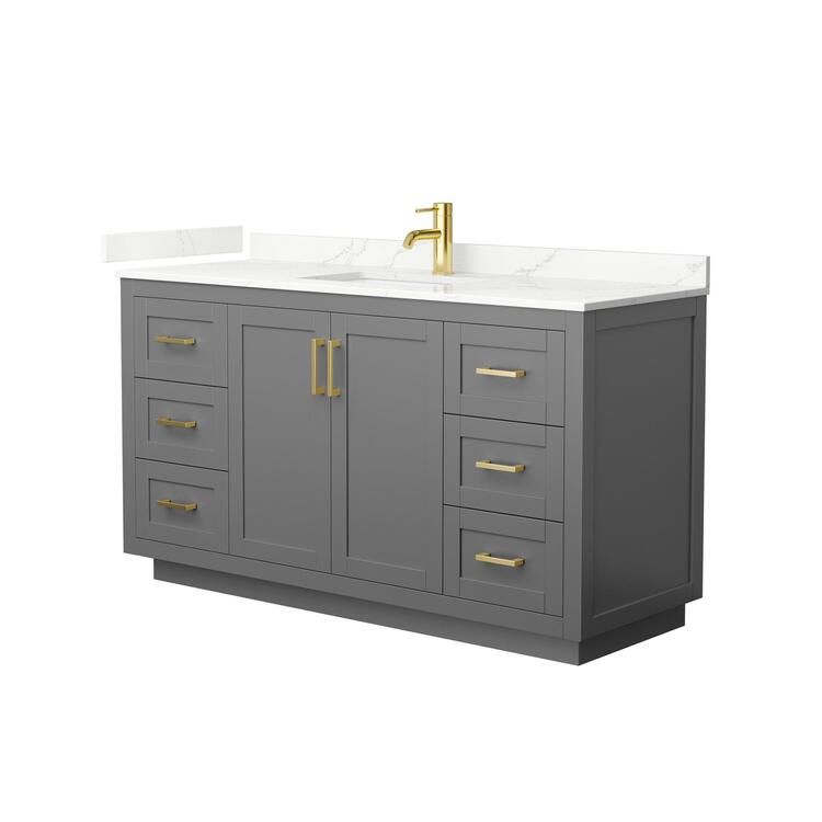 • Dark Gray Bathroom Vanity 60 Inch Giotto Quartz Countertop image - 1
